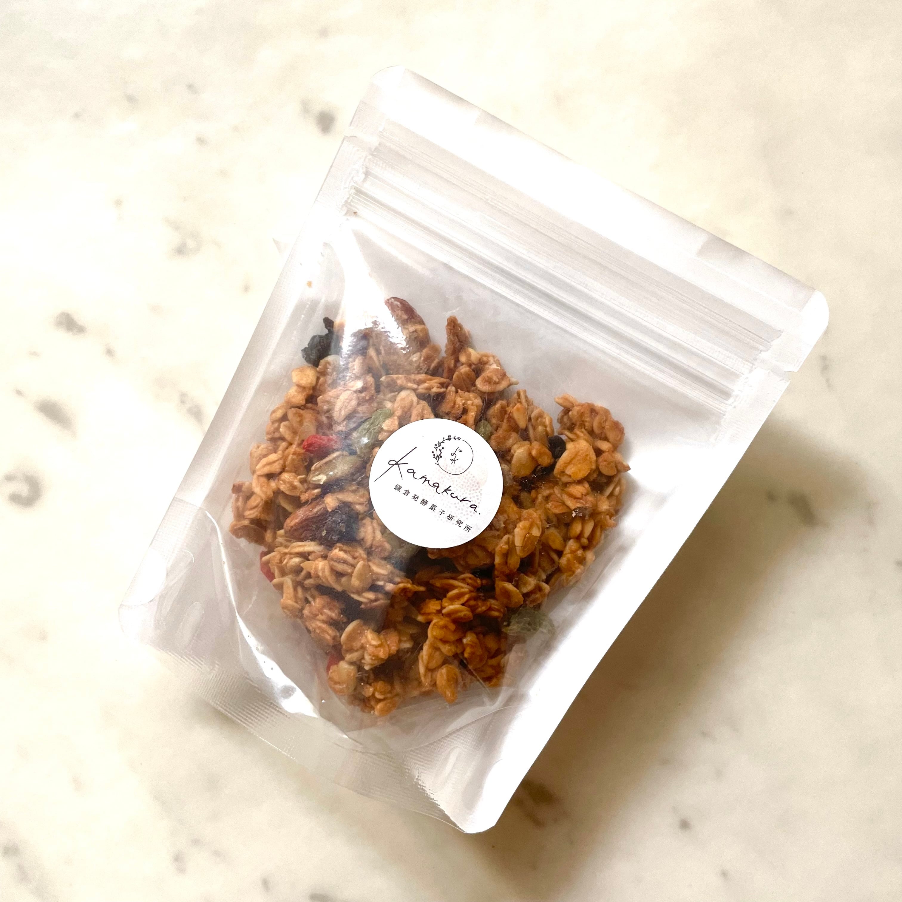 食物繊維豊富な有機オートミールに自家製の発酵調味料をたっぷりと纏わせて香ばしく焼き上げた、サクサクと軽い食感のグラノーラです。